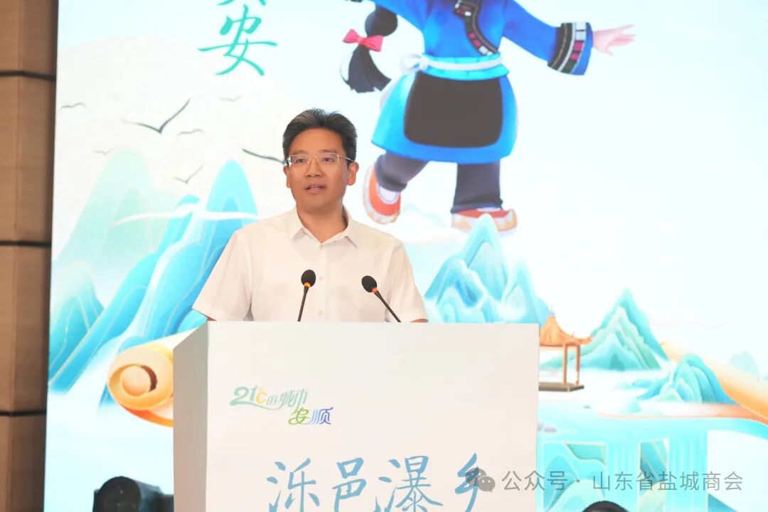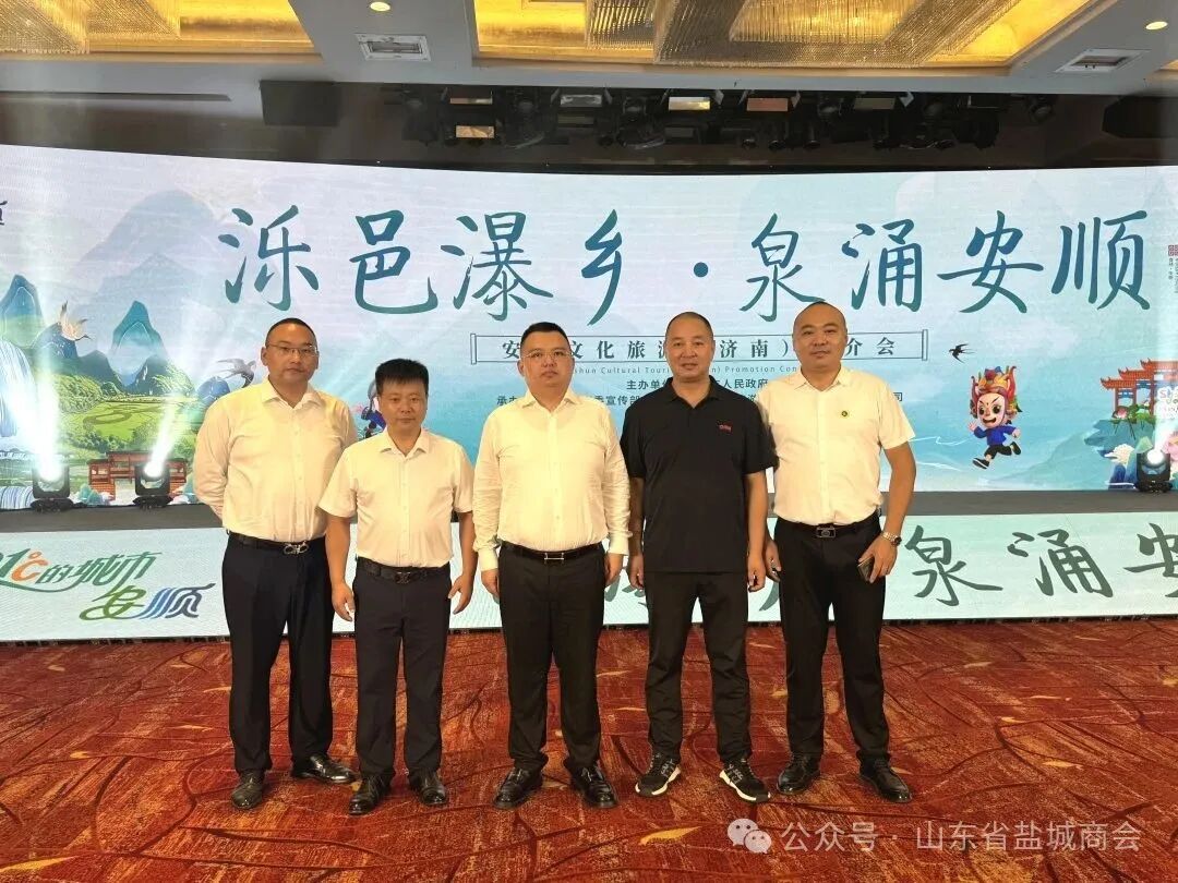2025年8月15日下午,山东省盐城商会应邀参加安顺文化旅游(济南)推介会,安顺市委副书记、市长尹恒斌,济南市政府党组成员、副市长任广锋,安顺市人大常委会副主任、副市长贺未泓,安顺市副市长石藩等出席活动,山东省盐城商会会长周州、执行会长兼秘书长王义国、副会长朱月明、吴海等人参加活动。